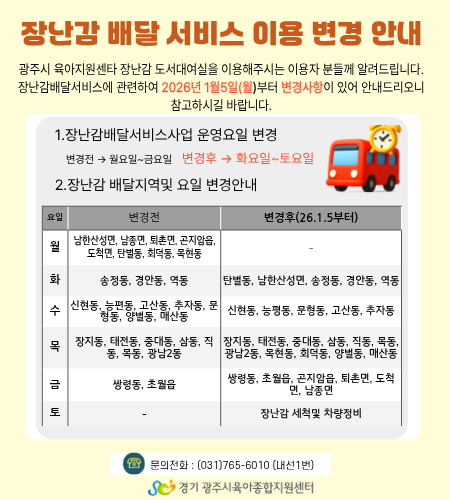 • 주소경기도 광주시 태봉로 193(고산문화누리센터 별관 1층)