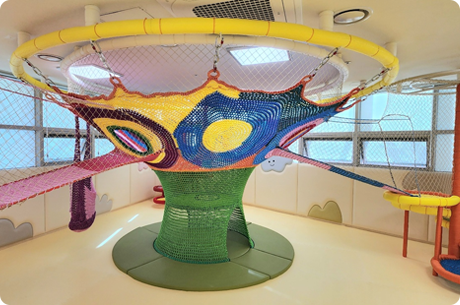 8개월부터 7세까지의 영유아와 보호자가 함께 이용할 수 있는 공간으로, 다양한 색채와 구조물을 활용한 알록달록 그물놀이터는 오르기·기어가기·균형잡기 등 신체 활동을 통해 대근육 발달은 물론, 창의력과 탐색 능력을 키울 수 있도록 설계된 공간.