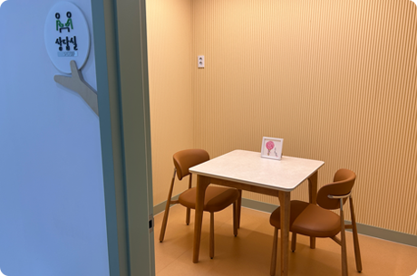 부모(양육자)와 기관 교직원을 위한 상담실로 편안한 분위기에서 다양한 상담을 진행할 수 있는 공간