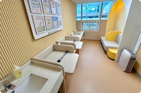 영아와 보호자를 위한 편의공간으로 수유용 소파, 기저귀 교환대,