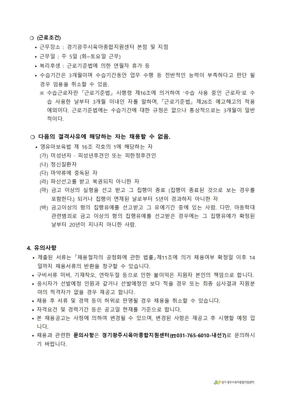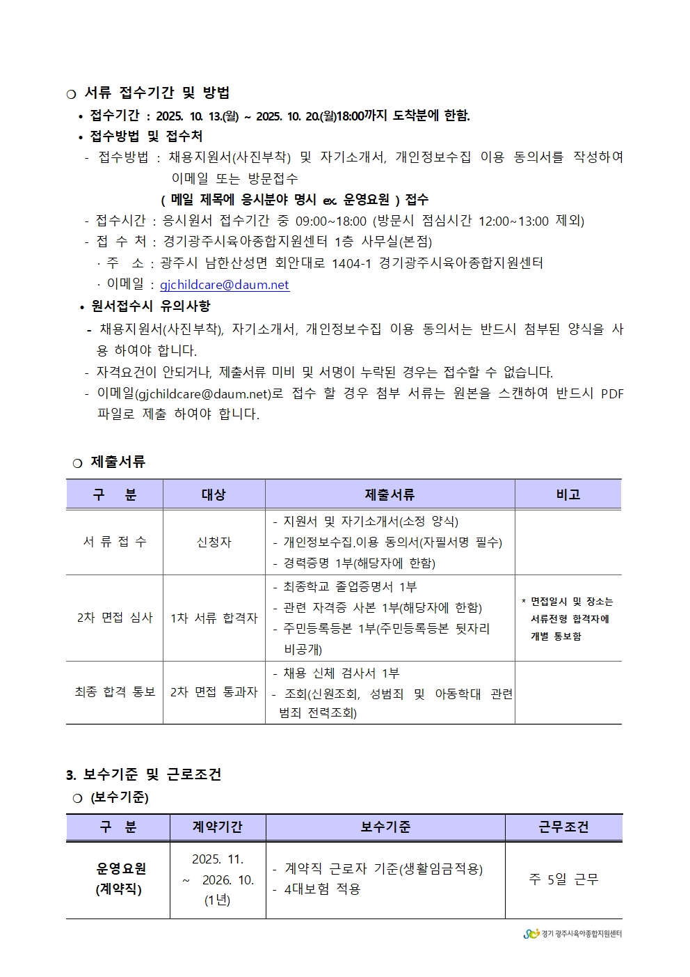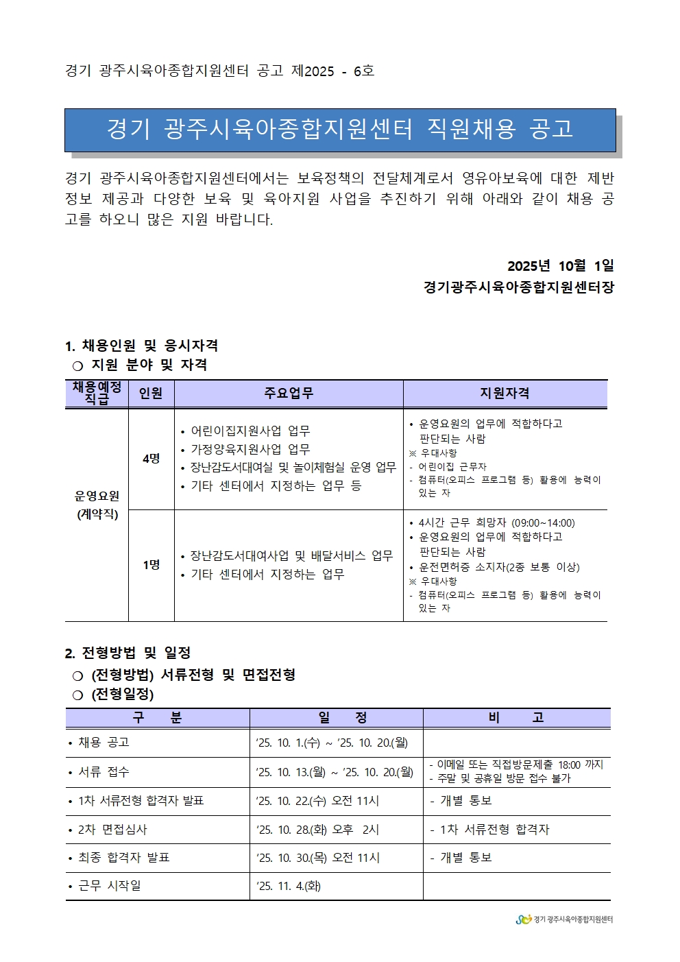 <경기광주시육아종합지원센터>직원채용공고 2025-6호(운영요원)