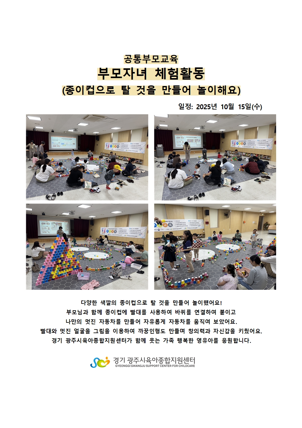 [남한산성] [남한산성 누림과 자람터] 부모자녀체험활동-종이컵으로 탈 것을 만들어 놀이해요