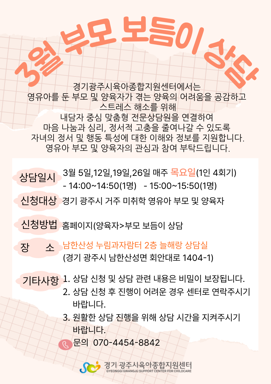 2. 부득이하게 상담 신청 후 진행이 어려운 경우 꼭 센터로 연락주시기 바랍니다.