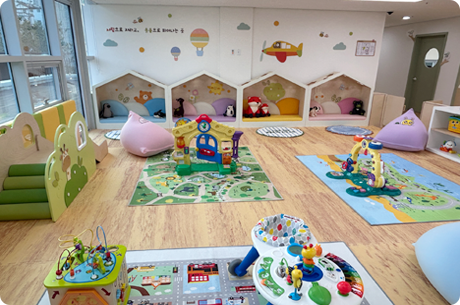 영아의 발달 단계에 맞는 다양한 놀이를 통해 즐겁고 안전하게 성장할 수 있도록 구성된 공간