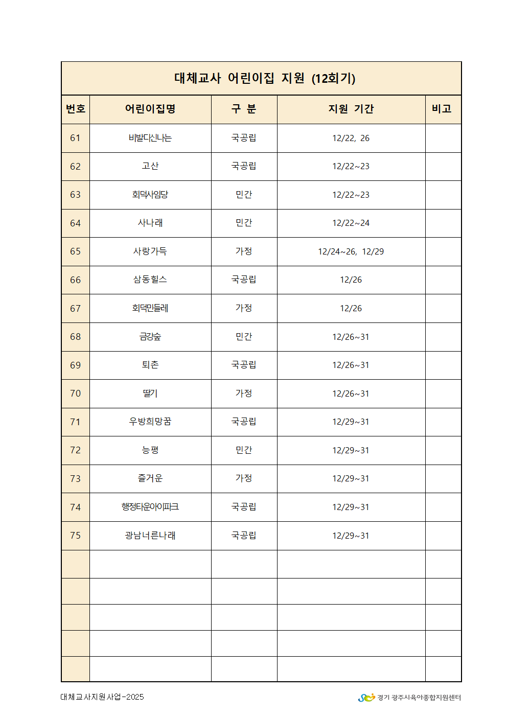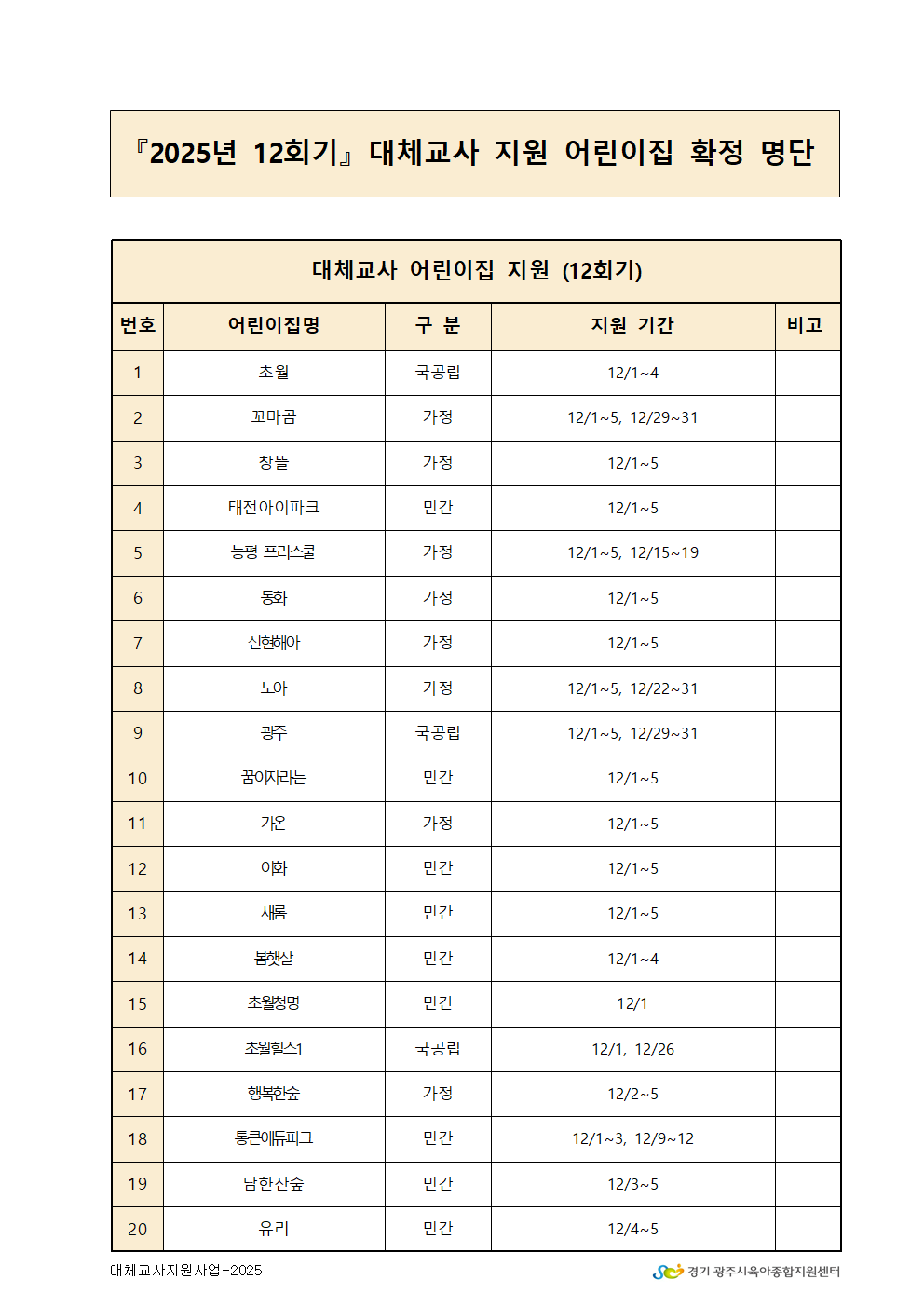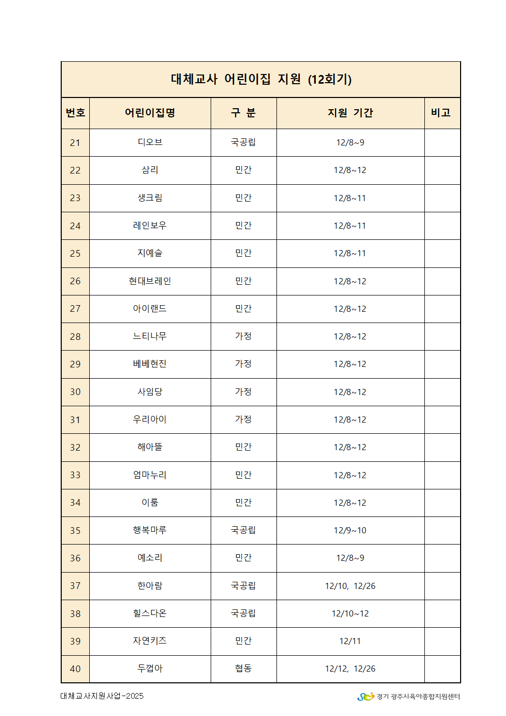 <경기광주시육아종합지원센터> 직원채용공고 2025-7호 행정원, 전산원, 지점 운영 팀장