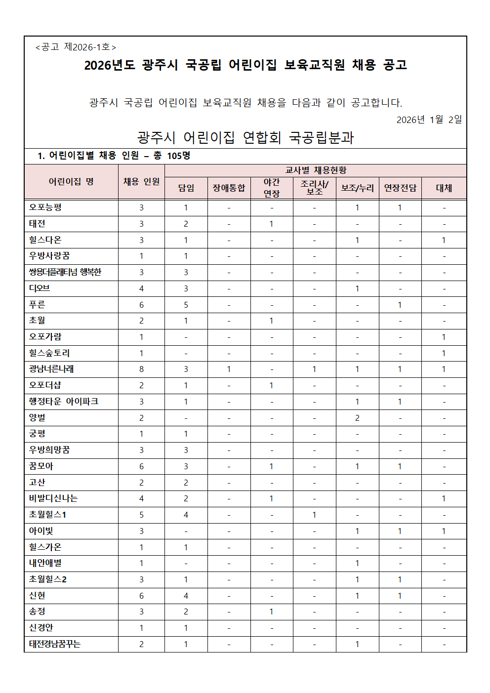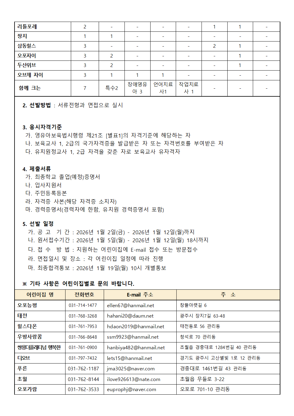 2026년도 경기 광주시 국공립어린이집 교사 채용 공고