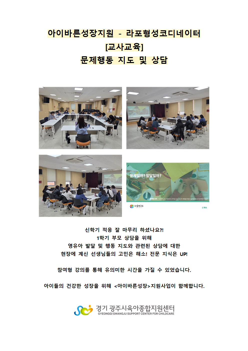 [남한산성] [아이바른성장] 교사모듈교육 "문제행동 지도 및 상담"