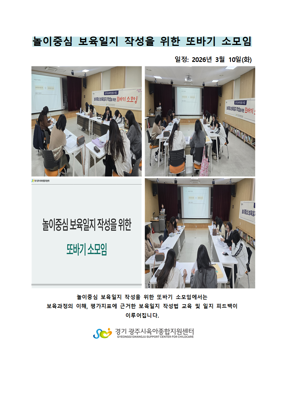 [남한산성] [경기도보육컨설팅사업] 놀이중심 보육일지 작성을 위한 또바기 소모임