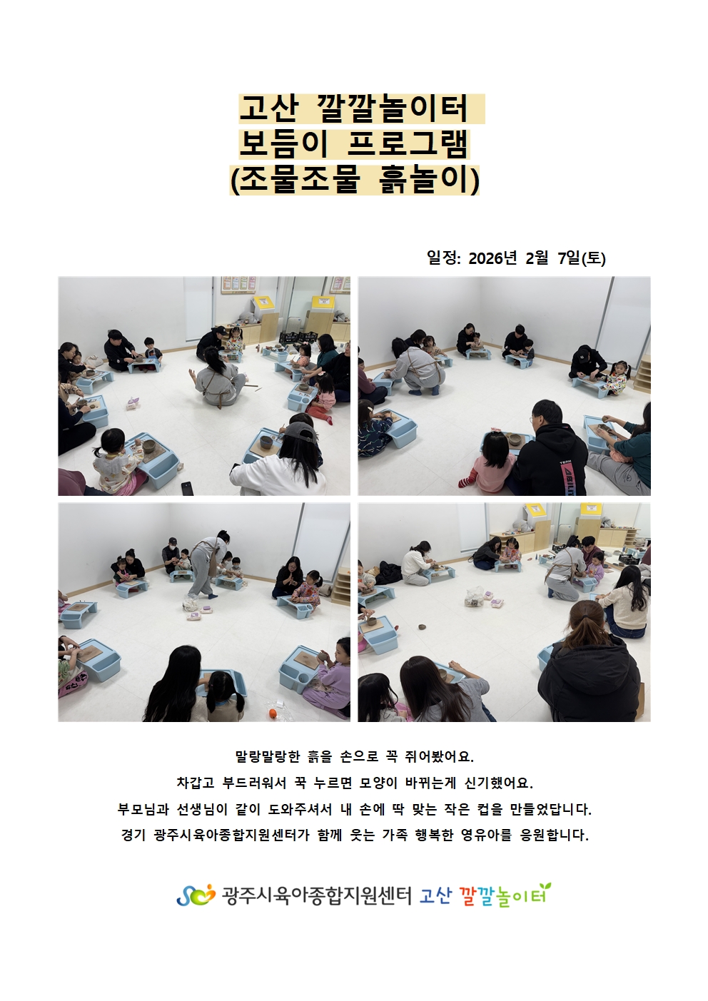 [고산] [고산깔깔놀이터] 보듬이프로그램 - 조물조물흙놀이